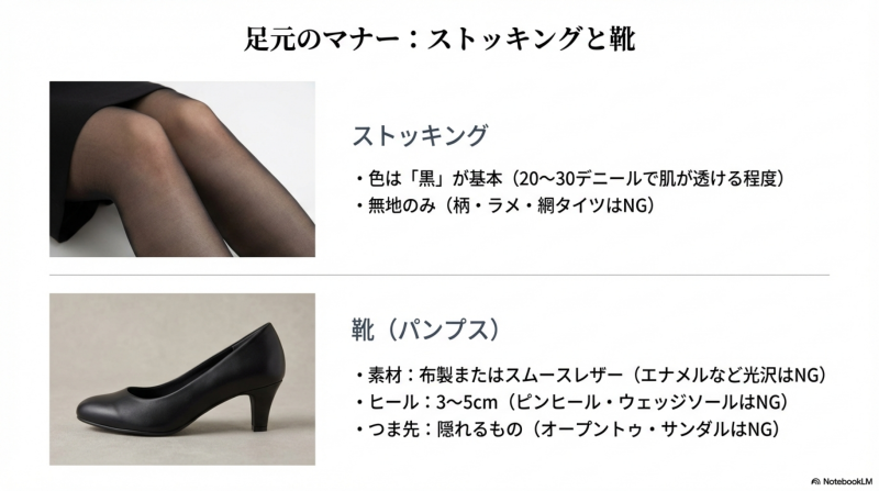 • 🔹 靴・バッグ・インナーは喪服用の黒色を選ぶ