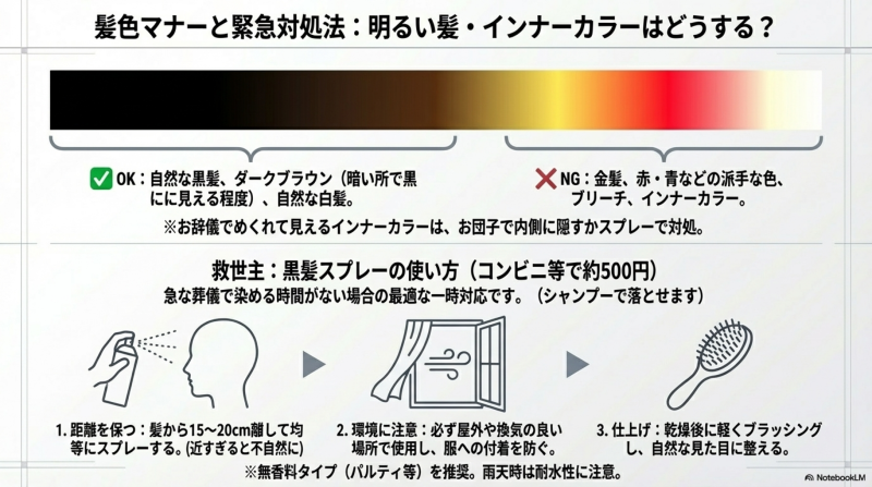 - 急な葬儀で黒髪にできない場合は?