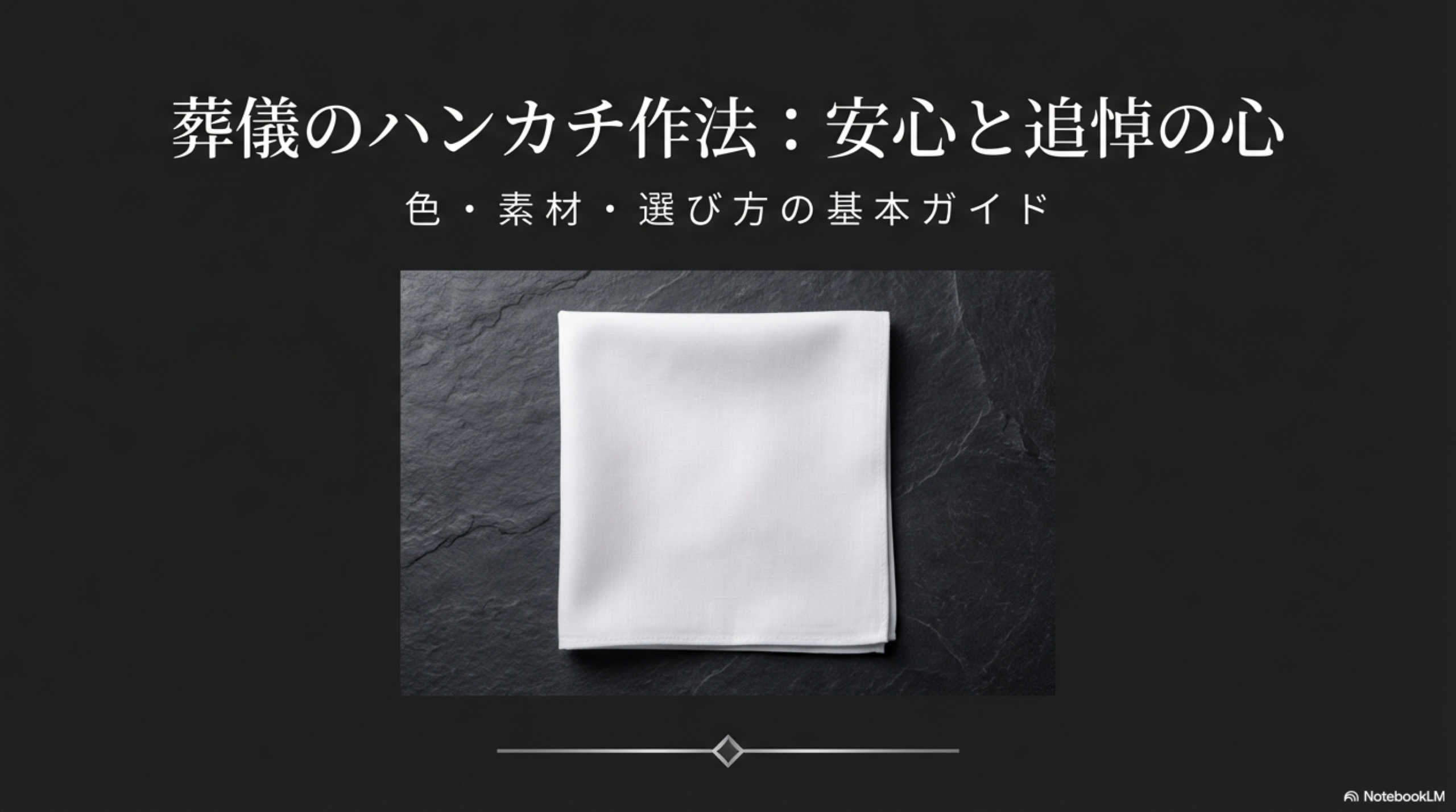 葬式やお通夜、告別式に参列する際、ハンカチは涙を拭ったり手を清めたりするために必携のアイテムです。フォーマルな場では適切なハンカチを選ぶことも重要なマナーの一つとなります。