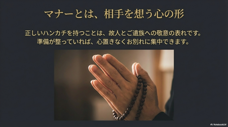 葬儀におけるハンカチの持ち運びと使用方法にも基本的なマナーがあります。