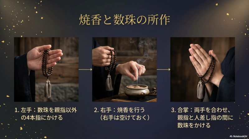 - 🔹 右手は空けておく(焼香に使うため)