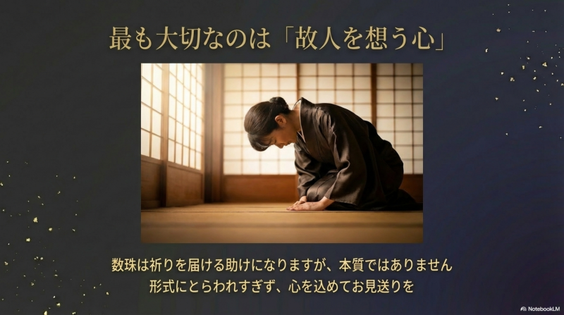 ただし、数珠がないからといって参列を躊躇する必要はありません。最も大切なのは故人を偲ぶ気持ちであり、数珠の有無で判断されることはありません。