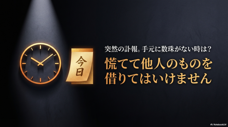 突然の訃報に慌てて喪服を引っ張り出したら、数珠が見当たらない。買いに行こうとしたら「数珠は自分で買ってはいけないらしい」という話を思い出して、手が止まってしまった——そんな経験はありませんか。