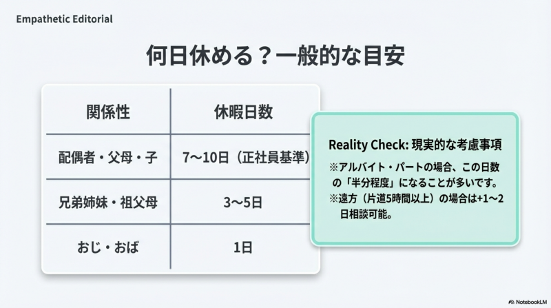 本記事では、豊富な調査データと法的観点に基づいて、アルバイト・パートが葬式で休む際の具体的な連絡方法と例文、必要な 証明書類の入手方法、そして「休めない」と言われた場合の 実践的な対処法 まで詳しく解説します。