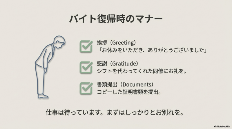 忌引き休暇を終えて職場に戻った際には、適切な挨拶が求められます。