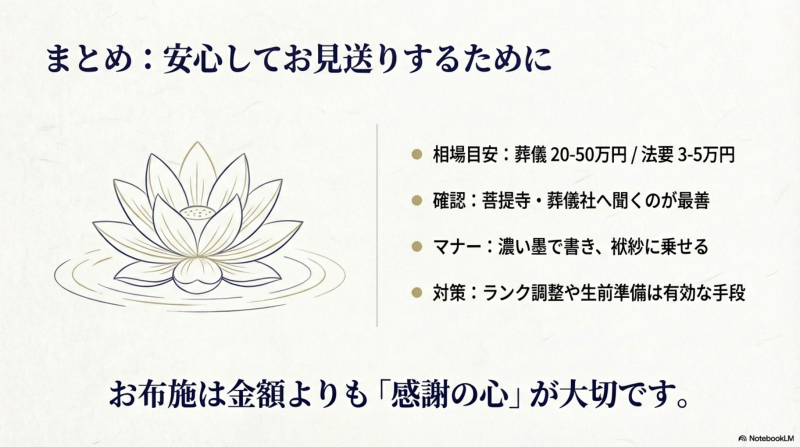 お布施は感謝の気持ちを表すものであり、無理をして高額を包む必要はありません。この記事の相場を参考に、ご自身の状況に合った金額を安心して準備してください。