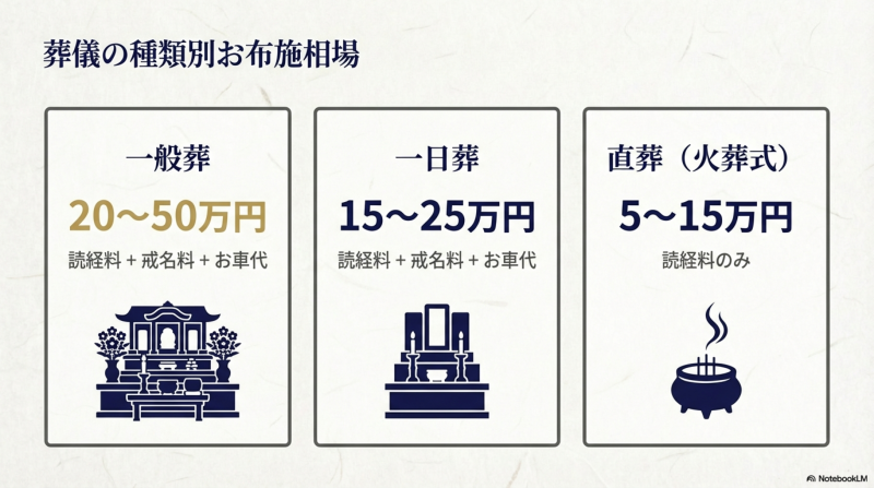 お布施の相場一覧【葬儀の種類別】