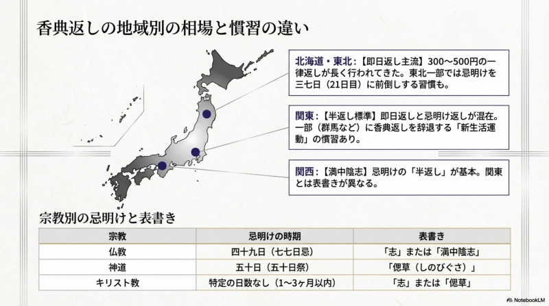 香典返しの地域別の相場と慣習の違い