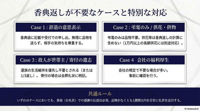 香典返しが不要なケースと特別な対応