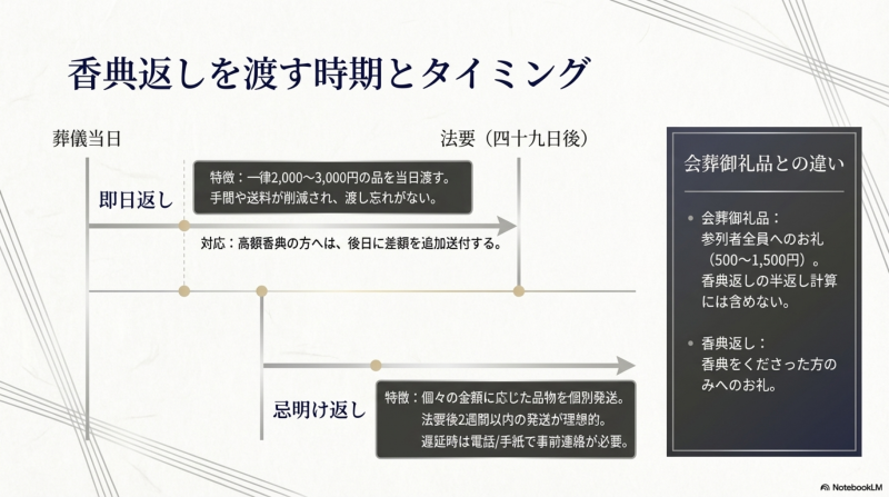 • 即日返し+忌明け後の追加対応で段階的にお返しする方法もある