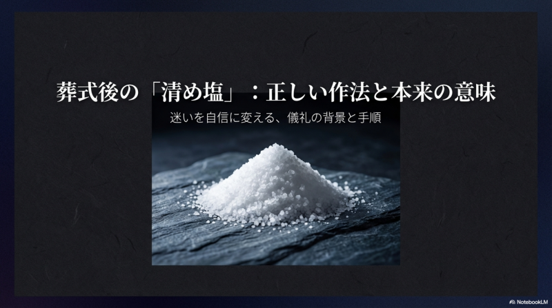 葬儀から帰宅して玄関の前に立ったとき、ふとポケットの中の小袋に気づく。「あ、塩を使うの忘れた」——そのまま家に入ってしまい、後からじわじわと不安が込み上げてきた経験はありませんか? 清め塩の習慣は神道と仏教の死生観が混在した日本独特の慣習で... -